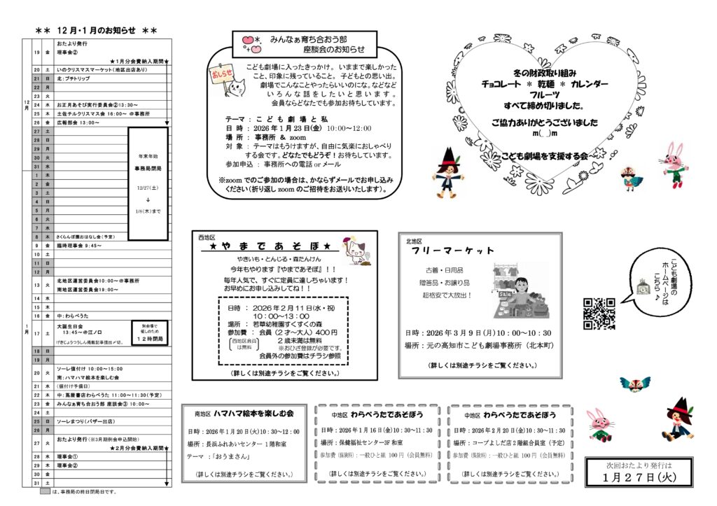 会員さん向けのお知らせ・忘れ物情報・『げきじょうつうしん』最新版を掲載しています。