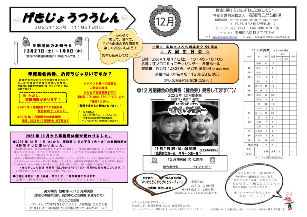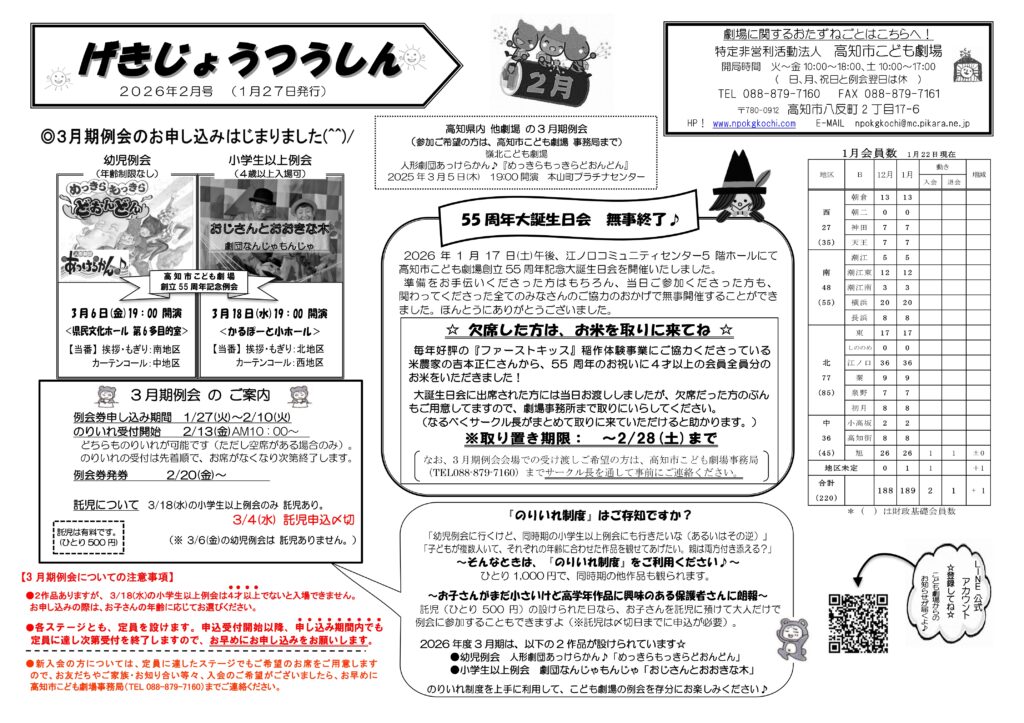会員さん向けのお知らせ・忘れ物情報・『げきじょうつうしん』最新版を掲載しています。