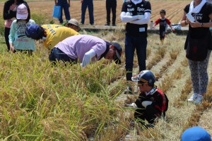 8/4(火)、南国市農家の吉本正仁さんの田んぼをお借りして、春に高知けいば騎手会の皆さんと植えたお米を収穫しました!収穫祭は、今年で3回目。