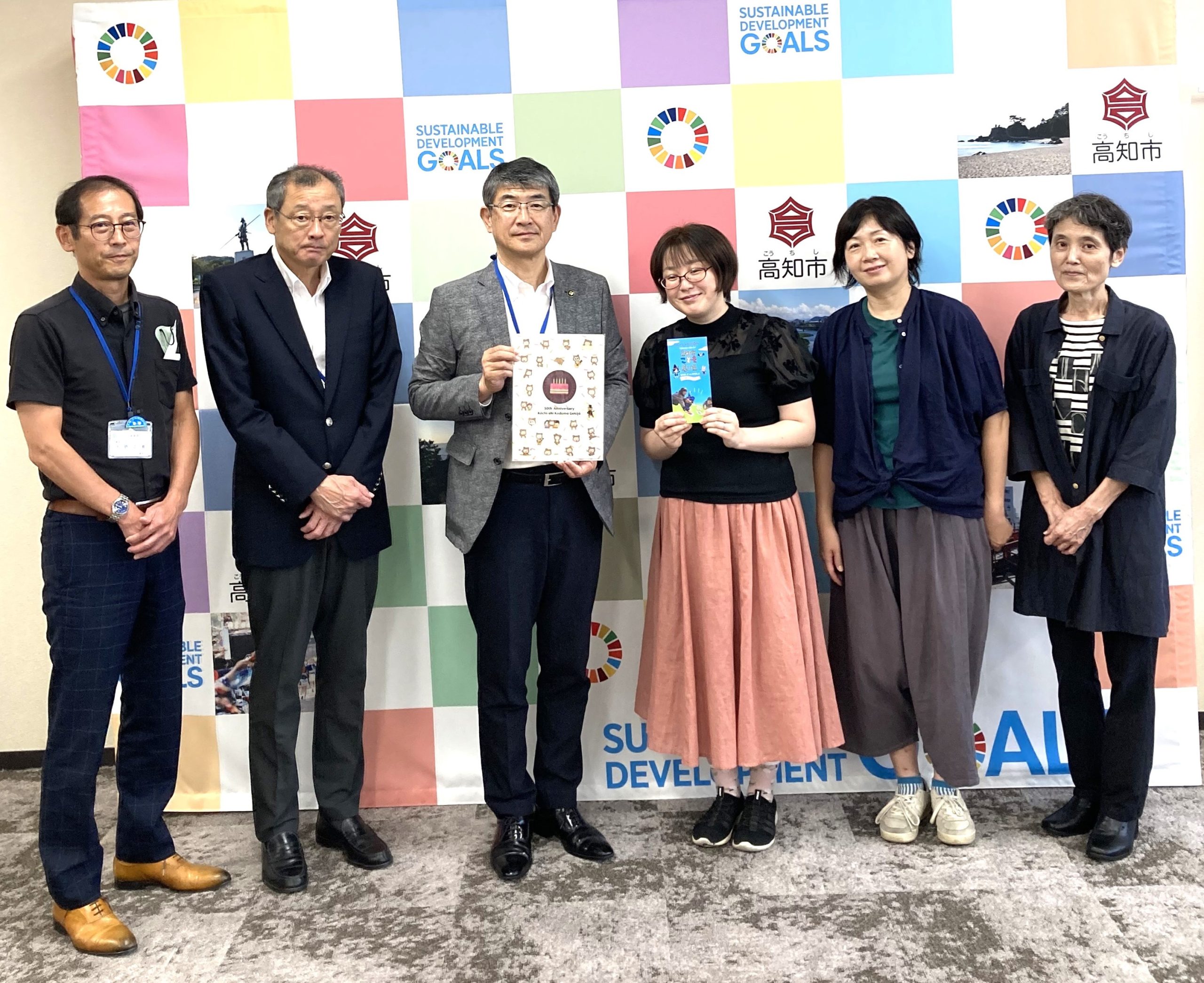 そんな中、8月8日(木)の高知市役所への挨拶まわりでは、思い切って桑名龍吾市長への面会を希望したところ、市長は過密スケジュールを縫ってお時間を取ってくださった上に、松下整教育長、こども未来部の大野正貴部長も同席してくださいました。