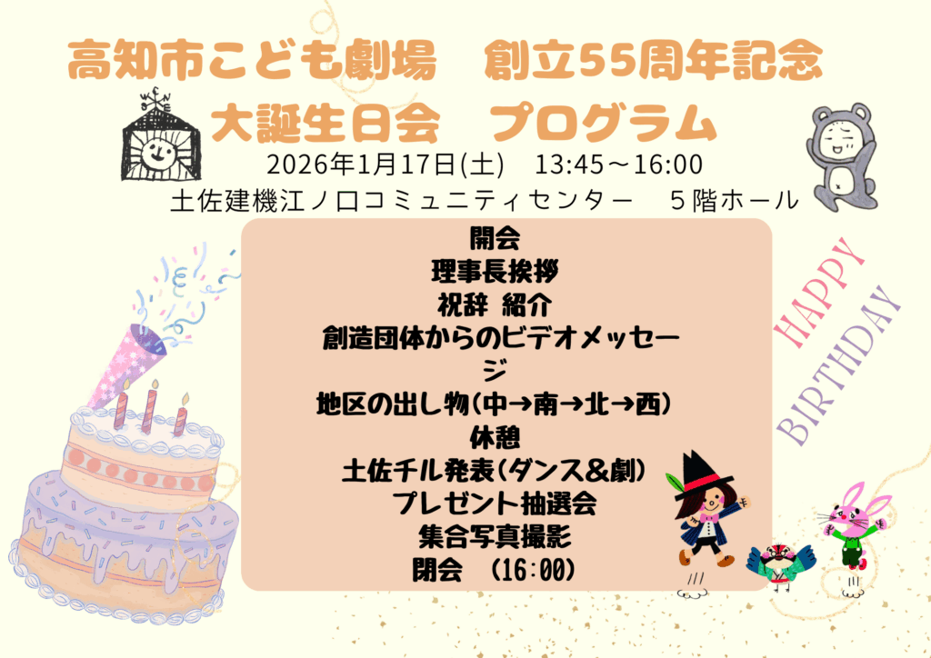 55周年を迎えた高知市こども劇場をこれからもどうぞよろしくお願いします。